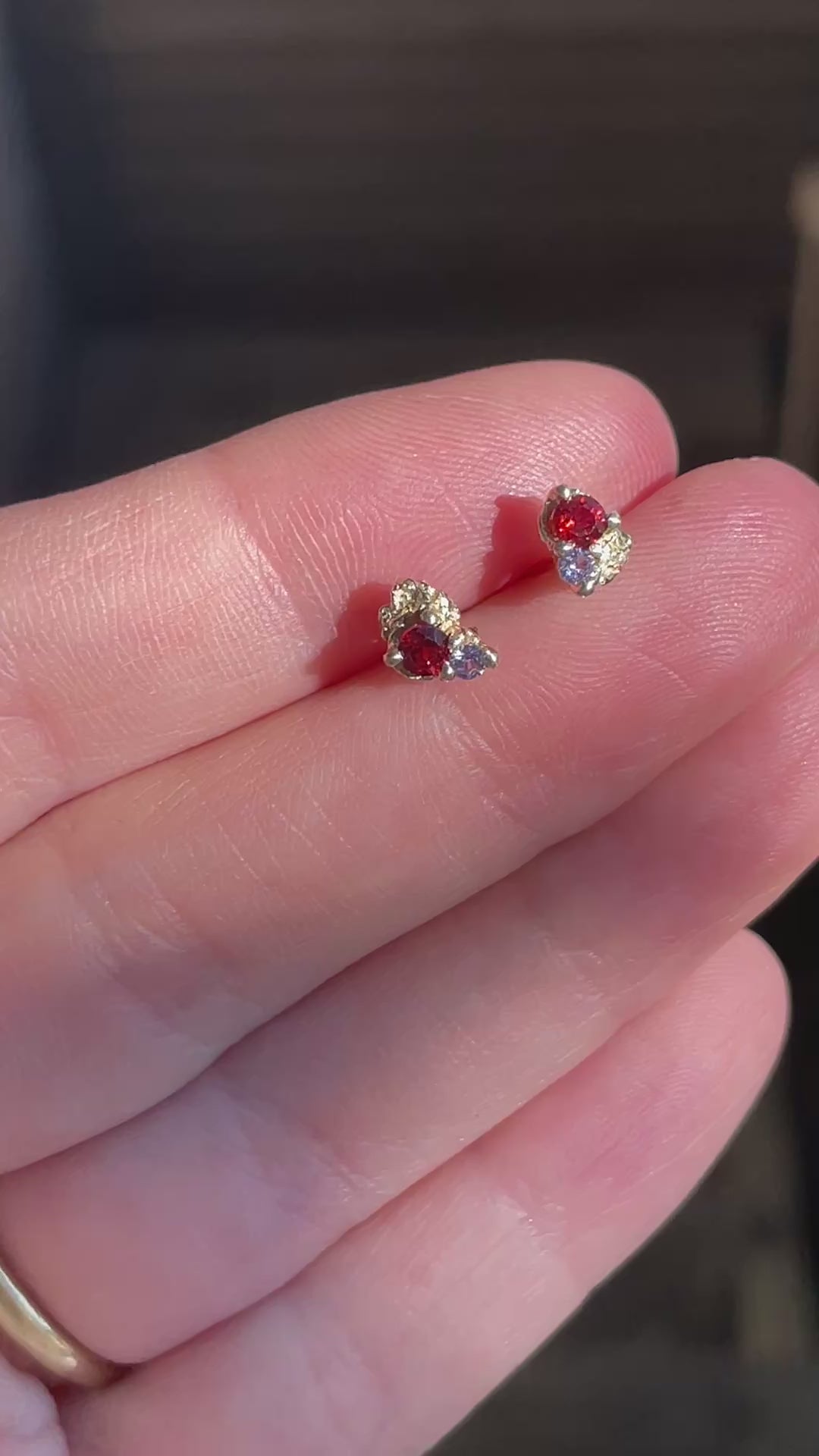 14k gold cluster studs with .30 total carat worth of garnet and amethyst.