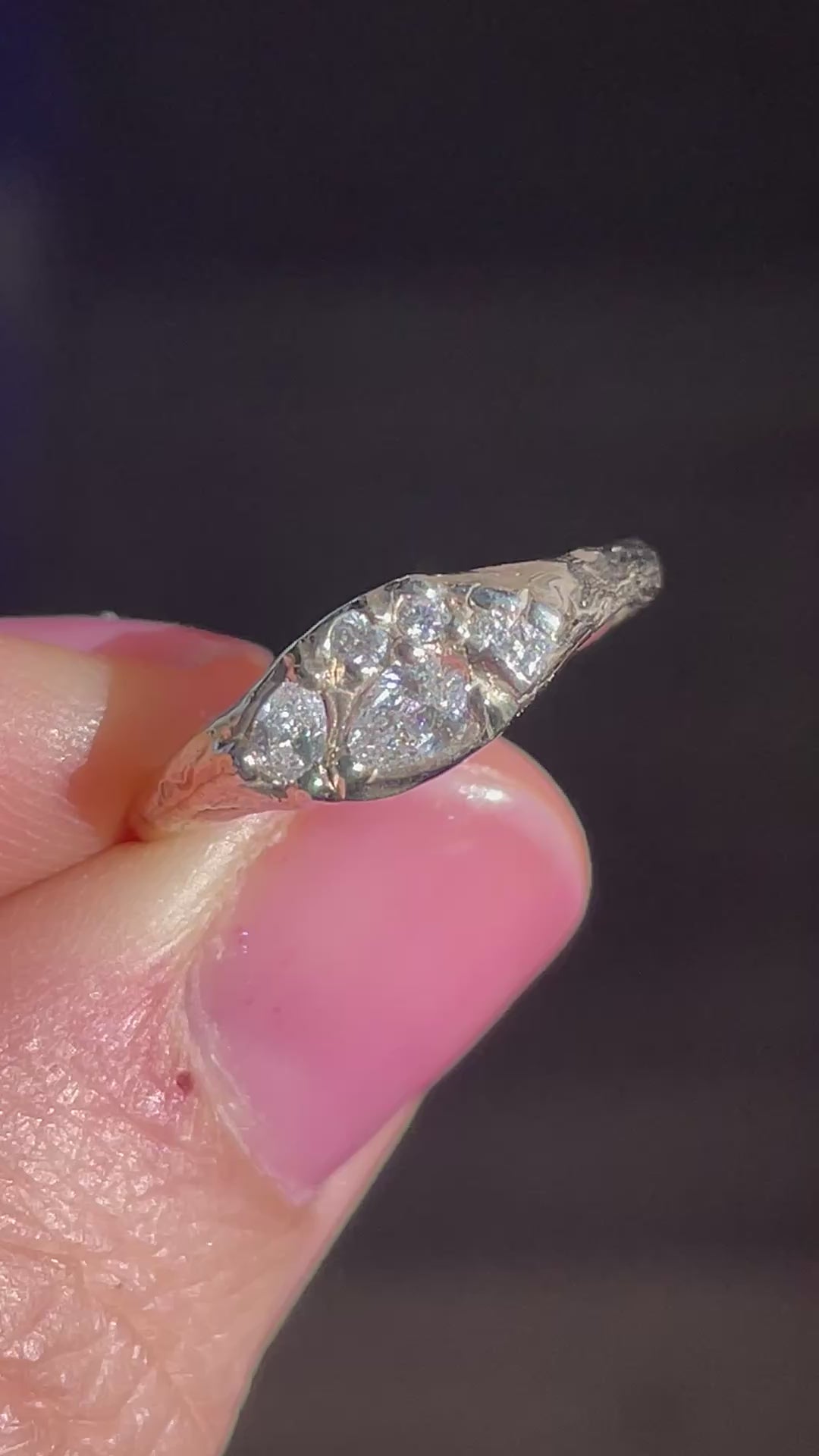 This is a one-of-a-kind ring, photos show the exact ring you will receive. Ready to ship as size 4.5. Can be resized within 1 size up or down.